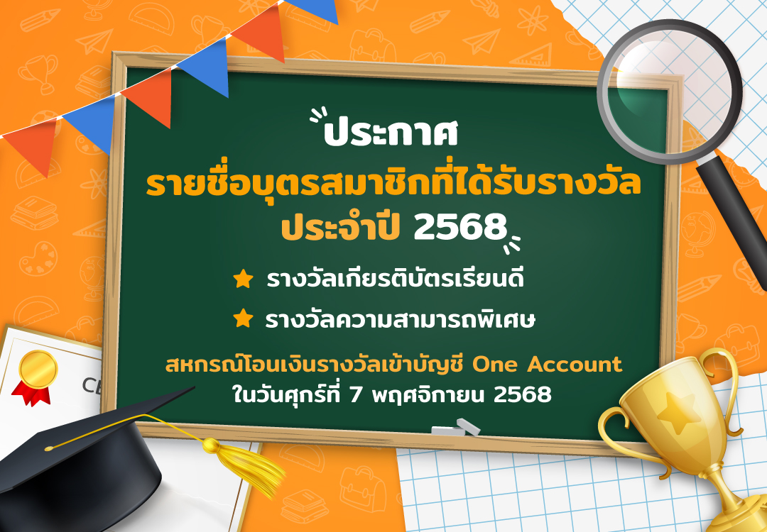 ประกาศรายชื่อบุตรสมาชิกที่ได้รับรางวัล “เกียรติบัตรเรียนดี และรางวัลความสามารถพิเศษ ” ปี 2568