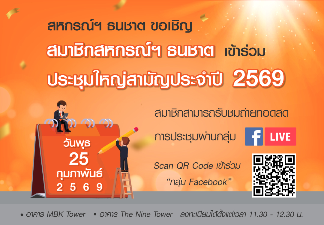 - สำหรับสมาชิกที่ไม่สามารถเข้าร่วมการประชุม สามารถรับชมการถ่ายทอดสดการประชุมผ่านทาง กลุ่ม Facebook Live สหกรณ์ออมทรัพย์ พนักงาน ธนชาต จำกัด