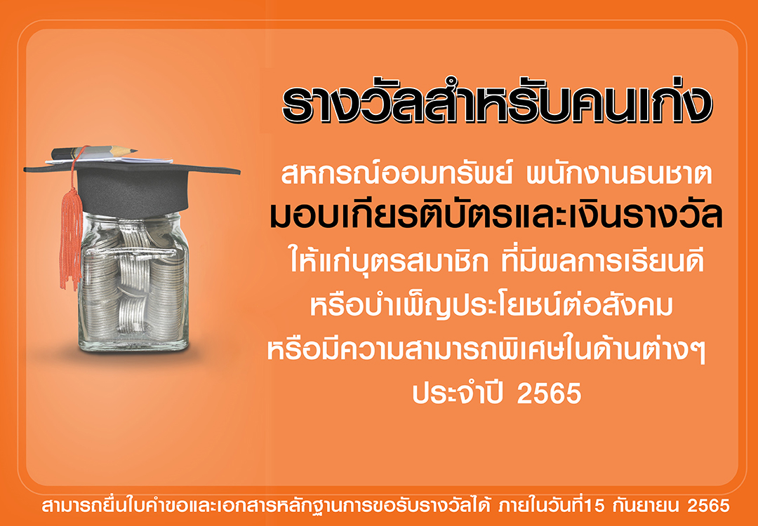 สหกรณ์ออมทรัพย์ พนักงาน ธนชาต จัดสวัสดิการให้แก่บุตรสมาชิกประจำปี 2565 โดยจะมอบเกียรติบัตรและเงินรางวัล เพื่อเป็นขวัญกำลังใจให้กับน้อง ๆ ที่มีผลการเรียนดี หรือบำเพ็ญประโยชน์ต่อสังคม หรือมีความสามารถพิเศษในด้านต่างๆ ซึ่งสมาชิกผู้ขอรับรางวัลให้กับบุตรจะต้องมีอายุสมาชิกภาพตั้งแต่ 1 ปี ขึ้นไป โดยบุตร 1 คน สามารถยื่นใบสมัครขอรับรางวัลได้เพียง 1 ประเภท เท่านั้น เปิดรับสมัครแล้ว วันนี้ – 15 กันยายน 65
