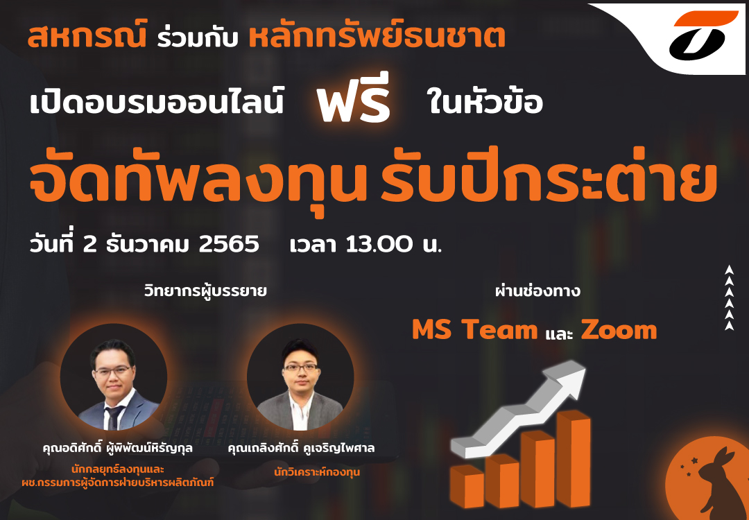 สหกรณ์ ร่วมกับ หลักทรัพย์ธนชาต ขอเชิญสมาชิกสหกรณ์ธนชาตทุกท่าน เข้าร่วมอบรมออนไลน์ในหัวข้อ "จัดทัพลงทุน รับปีกระต่าย"