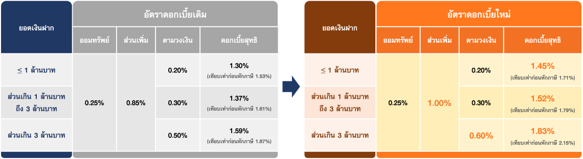 - อัตราดอกเบี้ยสุทธิขึ้นอยู่กับยอดเงินฝาก