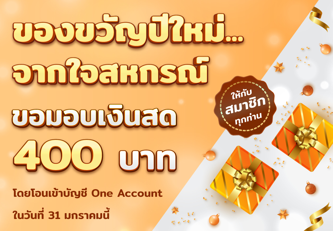 สมาชิกสหกรณ์ธนชาต เตรียมเฮ!!! สหกรณ์ใจดีแจกของขวัญปีใหม่ให้พี่ๆเพื่อนๆ สมาชิก คนละ 400 บาท โดยจะโอนเงินเข้าบัญชีเงินฝากธนาคารเพื่อทำธุรกรรมกับสหกรณ์ (One Account) ให้สมาชิก ในวันที่ 31 มกราคม 2566 นี้ สมาชิกที่ยังไม่ได้ส่งเอกสาร One Account ให้กับสหกรณ์ จะได้รับเงินโอนในรอบถัดไป ในวันที่ 20 กุมภาพันธ์ 2566 ดังนั้น เพื่อรักษาผลประโยชน์สูงสุดของท่าน โปรดดำเนินการส่งเอกสารให้สหกรณ์ เพื่อที่สมาชิกจะได้ไม่พลาดในการรับเงินรอบถัดไป