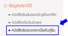 3. คลิกเมนู "ข้อมูลประจำปี" และคลิกเลือก "หนังสือรับรองดอกเบี้ยเงินกู้ยืม"