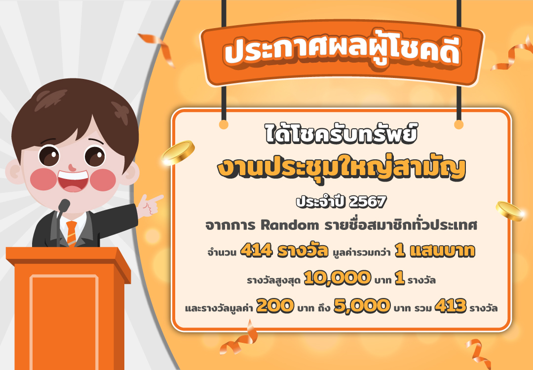 2. สหกรณ์จะโอนเงินสดเข้าบัญชี One Account ของสมาชิกที่ได้รับรางวัล ในวันที่ 15 มีนาคม 2567 นี้