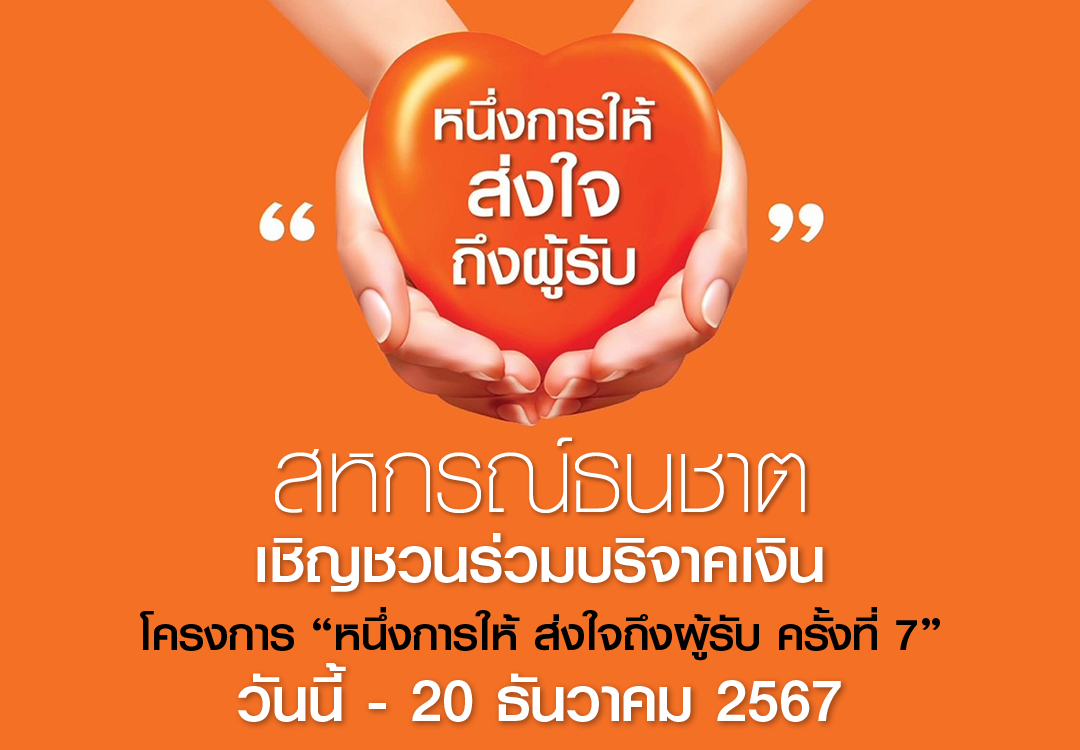 สหกรณ์ธนชาตขอเชิญชวนพี่ๆ เพื่อนๆ สมาชิกทุกท่าน ร่วมบริจาคเงินเพื่อแบ่งปันสิ่งดี ๆ ให้กับสังคม ในโครงการ “หนึ่งการให้ ส่งใจถึงผู้รับ ครั้งที่ 7” ซึ่งเงินบริจาคทั้งหมดจะนำไปมอบให้กับสถานศึกษา, สถานพยาบาล, มูลนิธิเกี่ยวกับเด็กพิการและเด็กด้อยโอกาสทางสังคม สำหรับผู้ที่บริจาคเงินตั้งแต่ 500 บาทขึ้นไป สามารถขอรับใบเสร็จรับเงิน เพื่อนำไปลดหย่อนภาษีได้