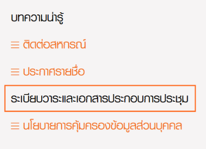 4. และเลือกเมนู "ระเบียบวาระการประชุมและเอกสารประกอบการประชุมใหญ่สามัญ ประจำปี 2568"