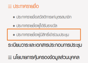 รายชื่อสมาชิกที่มีสิทธิ์เข้าร่วมประชุม สมาชิกสามารถดูได้โดยการ