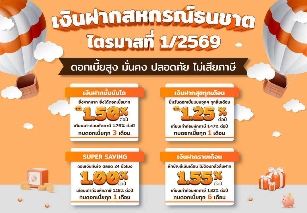 สหกรณ์คัดสรรมาเพื่อสมาชิก กับ 4 ผลิตภัณฑ์เงินฝาก โดยทุกผลิตภัณฑ์ รับดอกเบี้ย ไม่เสียภาษี!!!