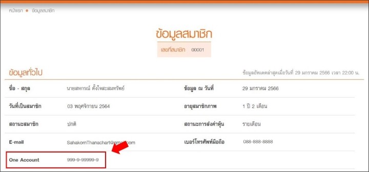 2. ในส่วนของข้อมูลทั่วไป ระบบจะแสดงข้อมูลเลขบัญชี One Account