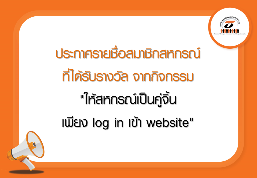 ประกาศรายชื่อกันแล้วคร้าบบ!! สำหรับสมาชิกสหกรณ์ธนชาต ที่ได้รับรางวัลบัตรกำนัลเทสโก้โลตัส มูลค่า 200 บาท จากกิจกรรม “ให้สหกรณ์เป็นคู่จิ้น เพียง Login เข้า website” สมาชิกท่านใดใด้รับรางวัลกันบ้าง ไปตรวจสอบรายชื่อได้เลยครับ
