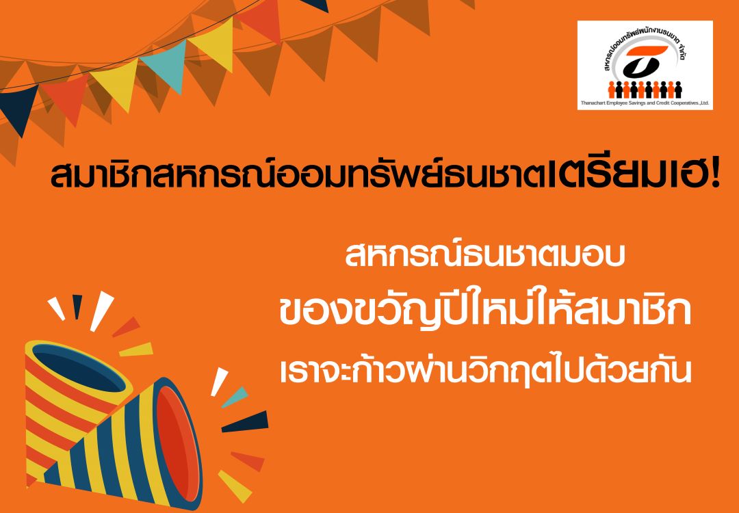 ในนามของคณะกรรมการ ผู้บริหาร และเจ้าหน้าที่สหกรณ์ธนชาตทุกท่าน ผมขอส่งความสุข ความปรารถนาดี และกำลังใจ มายังเพื่อนสมาชิกทุกท่าน เป็นของขวัญปีใหม่ ด้วยเงินสด 999 บาท และวงเงินค่ารักษาพยาบาล 1,500 บาท