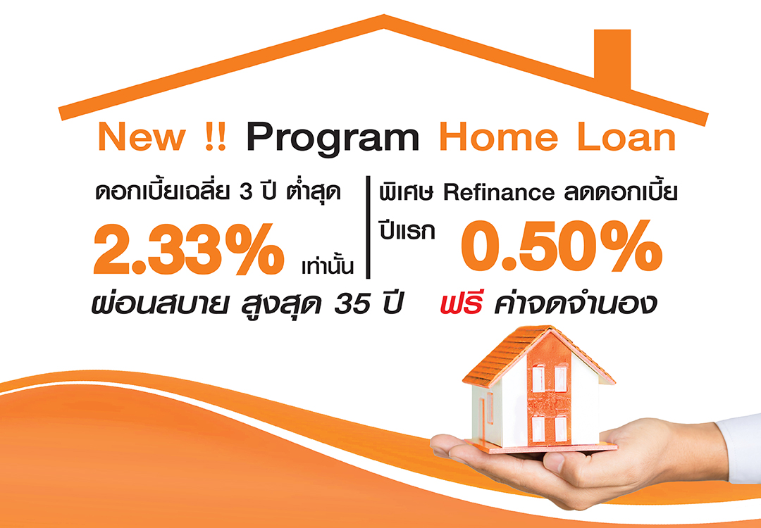 ใหม่ !!! โปรแกรมสินเชื่อเพื่อการเคหะ ดอกเบี้ยเฉลี่ย 3 ปี ต่ำสุด 2.33% ผ่อนได้สูงสุดถึง 35 ปี ฟรี ค่าจดจำนอง