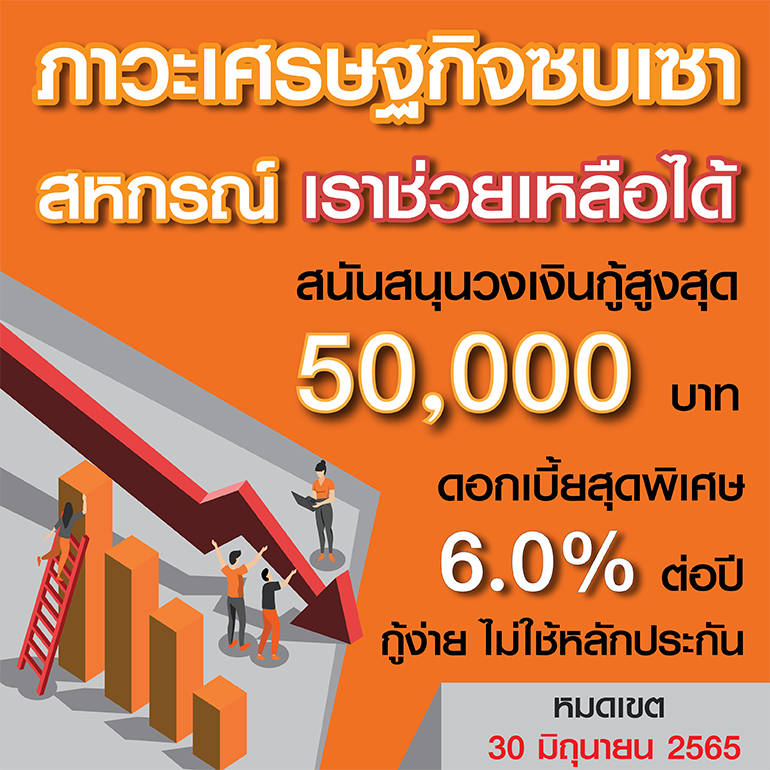 ภาวะเศรษฐกิจซบเซา สหกรณ์เราช่วยเหลือได้ ด้วยการสนับสนุนวงเงินกู้ดอกเบี้ยพิเศษ 6.0% ต่อปี