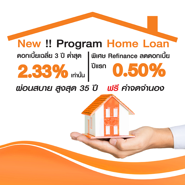 ให้สมาชิกมีบ้านได้ง่ายๆ สหกรณ์ขอเสนอโปรแกรมสินเชื่อเพื่อการเคหะ ดอกเบี้ยเฉลี่ย 3 ปี ต่ำสุด 2.33% ต่อปี ผ่อนได้สูงสุดถึง 35 ปี ฟรีค่าจดจำนอง พิเศษ Refinance ลดดอกเบี้ยปีแรกอีก 0.50%