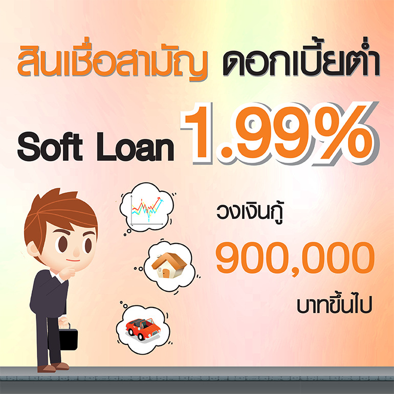 สินเชื่อสามัญ Soft Loan ดอกเบี้ยต่ำคงที่ถึง 2 ปี 1.99% ต่อปี วงเงินกู้ตั้งแต่ 900,000 บาทขึ้นไป