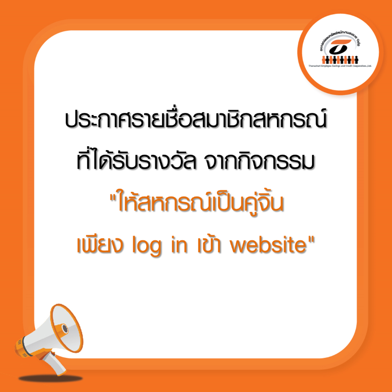 ประกาศรายชื่อกันแล้วคร้าบบ!! สำหรับสมาชิกสหกรณ์ธนชาต ที่ได้รับรางวัลบัตรกำนัลเทสโก้โลตัส มูลค่า 200 บาท จากกิจกรรม “ให้สหกรณ์เป็นคู่จิ้น เพียง Login เข้า website”