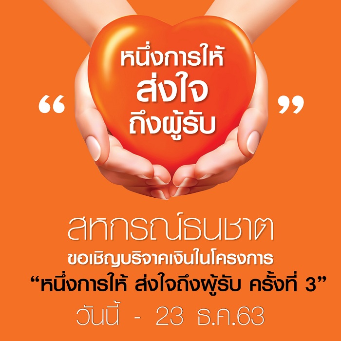 สหกรณ์ธนชาต ขอเชิญร่วมบริจาคเงินในโครงการ “หนึ่งการให้ ส่งใจถึงผู้รับ ครั้งที่ 3”